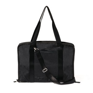 - Interior includes mesh pocket for garment and mesh pockets for shoes and accessories
