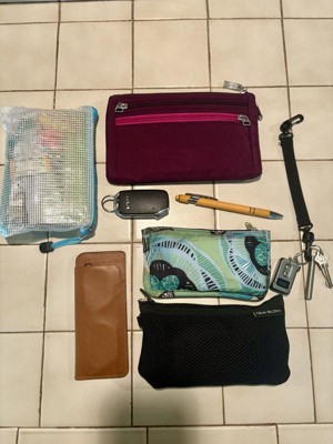 The Central Park Sling is my favorite bag, but I wanted a wire through the strap for more security. The Daytripper (DT) has that. Same dimensions as CP, but not heavier even with security features. DT has only one zipper for back compartment—on the left of you wear the bag in front. DT has no open middle pouch, so I can just shove in a scarf. But the CP clip over the pouch tarnishes, so I think the DT will look good longer. Zipper security is cumbersome but I would be glad of it in a crowd. Here’s what I carry: Back compartment—RFID currency organizer. Middle compartment—tech pouch (power bank, cords, AirPods), first aid/toiletries pouch, keys, flashlight, whistle. Front compartment—iPhone 16, pen, hygiene pouch (mask, wipes, etc.)