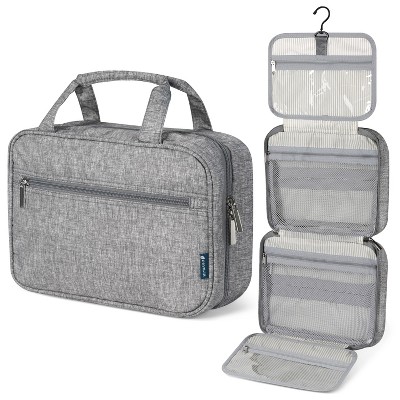 - Cosmetic pouch includes front zipper pocket and interior zipper pocket