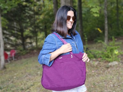 [This review was collected as part of a promotion.] Happy Ph.D. to me! Yes, I decided to spoil myself with this gorgeous Carryall Laptop Tote in Mulberry. It's worry-free for this mom because the recyclable material is wipeable and washable. It easily holds my laptop, e-reader, my kids' snacks, and the ton of books I have to read while I'm doing my research. When I need to be hands-free with my kids, I can easily switch to using the crossbody strap. Also, it protects my valuables with the matching anti-theft card wristlet. And it makes me feel pretty fancy when I'm headed to my kids' soccer practice.