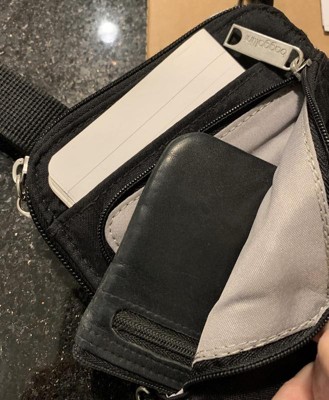 [This review was collected as part of a promotion.] I purchased this bag for travel. It is the perfect size to carry essentials such as I.D. card, credit cards, passport and phone. Love the anti-theft security.