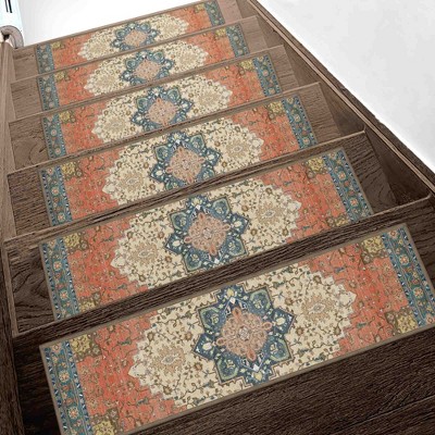 BAGOKIE 15 Pack 8"x30" Non-Slip Carpet Stair Treads, Red