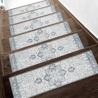 BAGOKIE 15 Pack 8"x30" Non-Slip Stair Treads for Wooden Steps, Blue