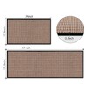 This 2-piece kitchen rug set brings comfort, protection, and timeless style to your space. Designed with absorbent fiber fabric and a waterproof rubber backing, each mat helps keep your floors dry and safe from spills, splashes, and everyday messes. Whether you’re cooking dinner or washing up at the sink, the cushioned feel adds extra comfort underfoot. With a classic woven texture and neutral tones, these rugs fit seamlessly into any kitchen decor—and cleanup is simple with a quick vacuum, hose rinse, or machine wash. From busy kitchens to high-traffic entryways, these mats offer a practical, stylish solution for every step.