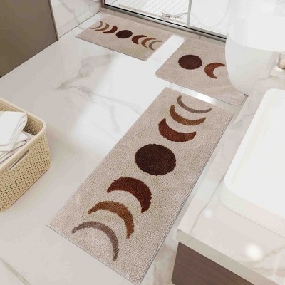 This 3-piece bath rug set brings playful boho charm and everyday function to your space. Featuring a moon phase design in soft gradient tones, each piece is made with plush microfiber and a non-slip TPR backing¡ªperfect for keeping your feet warm and your floors dry.