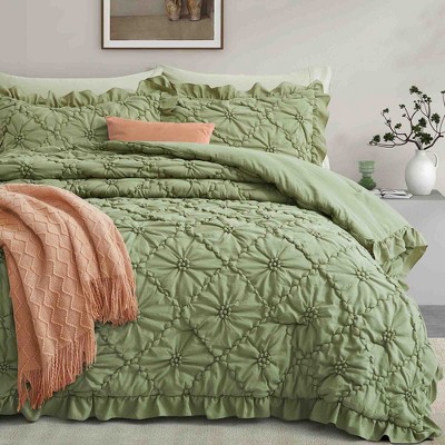 BAGOKIE 3 Pieces Pinch Pleat Floral Bed in a Bag Comforter Set
