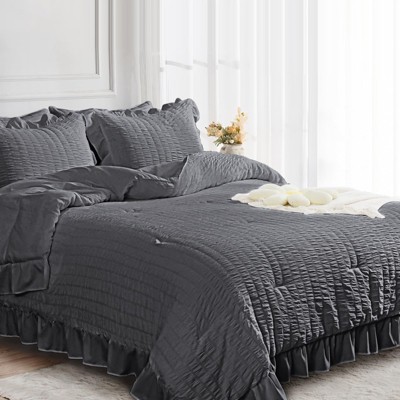 This ruffle comforter set combines airy comfort with timeless elegance, making your bedroom feel like a serene retreat. Crafted from breathable seersucker fabric that¡¯s 65% more breathable than cotton, it¡¯s soft, lightweight, and keeps you dry all night long.