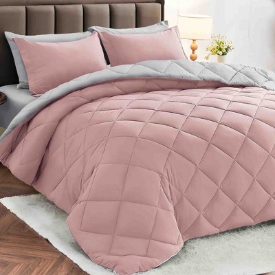 BAGOKIE 5/7 Piece Bed in a Bag All Season Bedding Set with Comforter, Sheets, Pillowcases & Shams, Pink