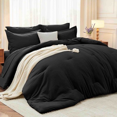 BAGOKIE 7-Piece Pinch Pleat Bed in a Bag King Size Comforter Set for All Season, Black