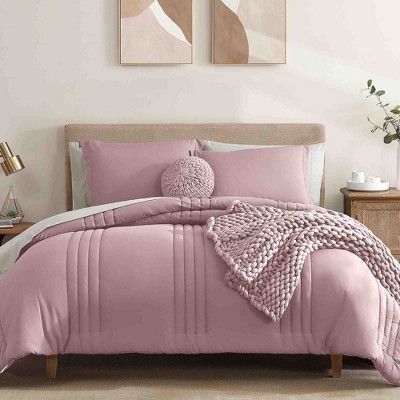 BAGOKIE 7-Piece Pinch Pleat Bed in a Bag Queen Size Comforter Set for All Season, Sepia Rose