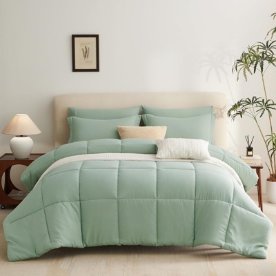 BAGOKIE 7 Pieces Bed in a Bag Queen Size Revesible Comforter set with Sheets, Pillowcases & Shams, Green
