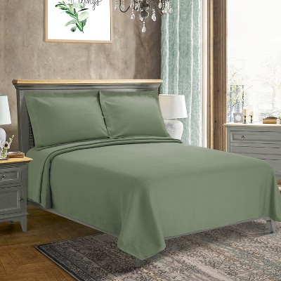 BAGOKIE 7 Pieces Boho Embroidered Farmhouse Bed in a Bag Full Size Comforter Set for All Season, Light Olive Green