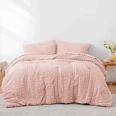 - The seersucker design adds gentle texture with a wave-like pleated finish, giving your bed a relaxed yet elevated look. Hidden quilting keeps the fill in place to prevent shifting or clumping over time.