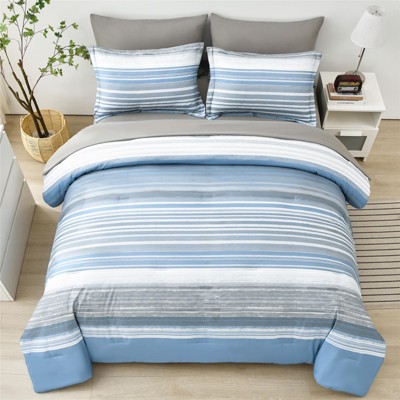 - 7-piece striped comforter set full size with 1 comforter(79”x90”),1 flat sheet(81”x96”),1 fitted sheet(54”x75”+16”),2 pillow cases(20”x30”),2 pillow shams(20”x26”)
