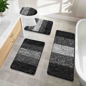 This 4-piece ultra soft bath rug set offers cozy comfort and functional style for your bathroom. Made with plush, high-density microfiber, each mat feels cloud-soft underfoot¡ªperfect for starting and ending your day with a touch of luxury. The elegant gradient design adds a modern pop of color while elevating your space with a spa-like vibe.