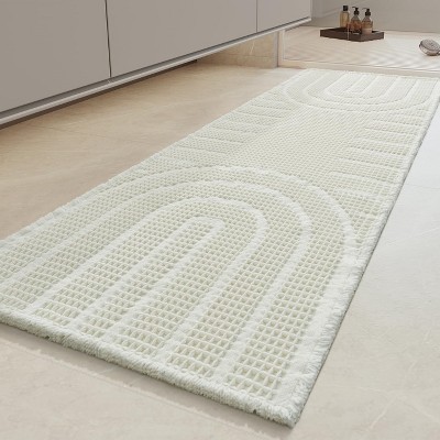 BAGOKIE Waffle Bath Mat Water Aabsorbent Bathroom Rug with Tassels, 2'x6', White