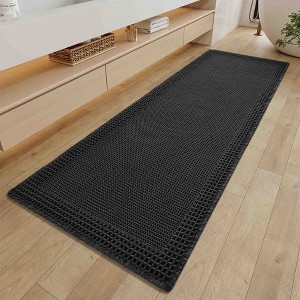 - Made with thick, quick-drying yarns, the waffle texture absorbs water fast to help keep your floors dry after baths or showers. The clear rubber backing provides a strong, non-slip grip to help prevent slips and protect your family.