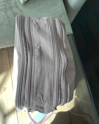 [This review was collected as part of a promotion.] Surprised me with aesthetics and quality. A beautiful dusty pink toiletry bag. It feels like a thick coated nylon material, not cheap or shiny. Has couple hoops to hang up or hold by hand. Three zippers, the middle one was a bit confusing but can be snapped open. One side has waterproof lining and the other side opens flat. All the inside is gray, which complements the pink color well. Love! I received an incentive to write this review. I received an incentive to write this review. I received an incentive to write this review. I received an incentive to write this review. I received an incentive to write this review. I received an incentive to write this review. I received an incentive to write this review. I received an incentive to write this review. I received an incentive to write this review. I received an incentive to write this review. I received an incentive to write this review. I received an incentive to write this review.