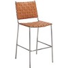 Introducing the Bahari woven counter stool�a blend of sophistication and modern design that elevates any space. With its cognac woven leather, this stool offers a touch of classic elegance that complements a variety of interiors. The sleek silver stainless steel frame provides a stylish contrast, creating a perfect balance between warmth and contemporary cool. Crafted from leather and metal, this stool promises comfort and style for your dining area or kitchen counter. The rich cognac color adds a warm tone, while the durable metallic frame ensures lasting support. Whether used for casual breakfasts or evening gatherings, this stool cultivates an inviting atmosphere. Transform your space with the Bahari woven counter stool, where traditional charm meets modern aesthetics. Experience the comfort and elegance it brings to your home, enhancing both function and design.