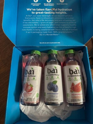Bai Kula Watermelon is a tasty sensation that captivates and hydrates. So feel free to spill the goss and gush about its sweet, watermelon flavor. Just don’t actually spill any of it. It’ll ruin your rep. At Bai, our water beverages deliver beyond basic hydration. Every exotic flavor is infused with antioxidants and other benefits. Not only is Bai Kula Watermelon deliciously bold and refreshing, but it has electrolytes, 1 gram of sugar, and contains no artificial sweeteners. We’ve added zinc which—in combination with Vitamin C—helps support a healthy immune system. Every hydrating sip hits a flavorful high note thanks to being sweetened with Stevia. And we’ve bottled it up in packaging made from 100% recycled plastic, excluding cap and label. Bai’s approach to innovation guides us in our quest to find new ways to translate modern wellness trends into tasty drinks everyone can enjoy. It’s a future too marvelous to exist only in our imaginations. We want everyone to experience it. Bai Kula Watermelon. It’s WonderWater.