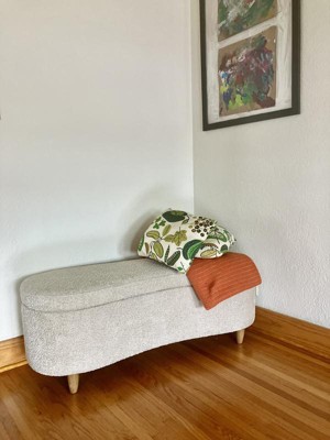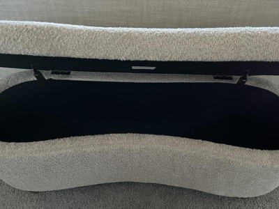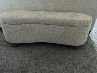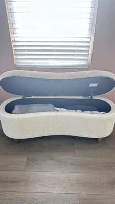 [This review was collected as part of a promotion.] This storage bench is exactly what I was looking for my entryway space. I love the ivory boucle fabric and the curved shape of the bench. It looks modern and very sleek. The storage space is perfect to hide shoes, small packages or clothing. I wish the bench was a little higher so there would be space to store shoes underneath, but it sits pretty low to the ground. It was very easy to assemble, no tools needed - just screw in the 4 legs into the bench and it’s ready. I am very happy with this bench. Perfect aesthetic piece with the bonus of hidden storage!