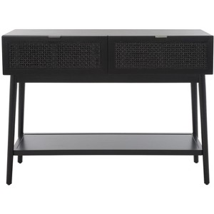 Reimagining Mid-Century chic with a contemporary-coastal update, this beautiful Baisley Console emanates relaxed seaside ambiance. Showcasing two drawers accented with black rattan webbing and a smooth lower shelf ideal for storage or display, Baisley�s black retro frame makes a bold style statement.