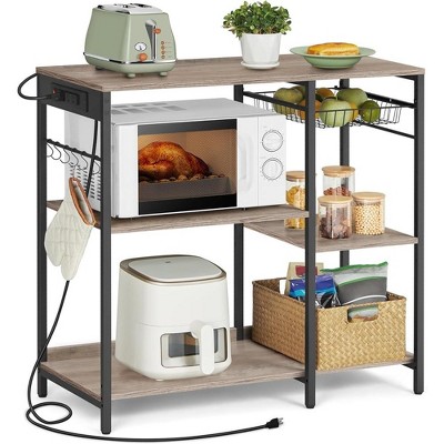 - Standing Baker’s Rack with Power Outlet: This bakers rack is equipped with 2 AC outlets to provide power for up to 2 devices simultaneously. The 35.4" L x 15.7" D tabletop provides you with enough space to place your kitchen appliances. This freestanding coffee bar can easily keep the room tidy.