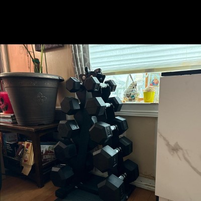 Dumbell 20lbs & 25lbs was missing!! The ones I had were oily & smelled weird. Had to return them. Stay away.