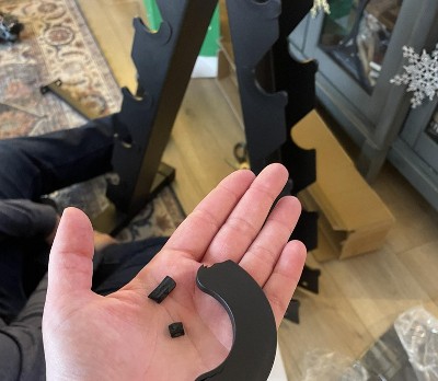 Arrived damaged and missing parts for the weight rack :(