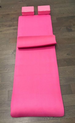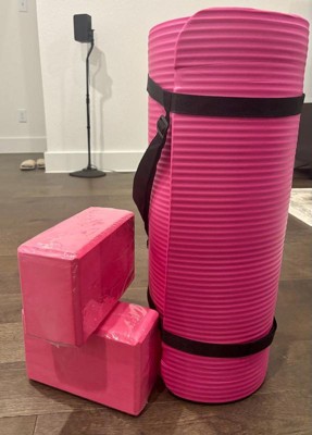 [This review was collected as part of a promotion.] I’m very impressed how thick this yoga mat is. It is the most comfortable mat I have ever used. I like the extra knee pad as well. The blocks are perfect and versatile. It’s long so I can lay completely flat on it very comfortably. It rolls up nicely and comes with a little handle that is easy to reattach.