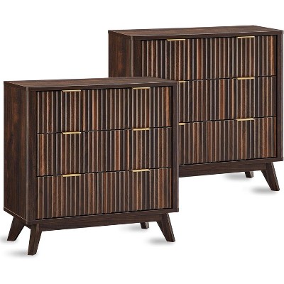 BALHAM TRADE-2Pcs Mid Century Modern Fluted Night Stand Wood Nightstands with Storage Drawers Open Shelf Greige-2 14.96"D x 23.62"W x 24.8"H
