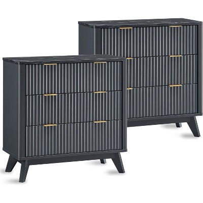 BALHAM TRADE-Farmhouse Night Stands with USB Charging Station 2 Drawers Open Shelf for Bedroom Grey-2 pack 18.1"D x 18.1"W x 24.1"H