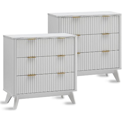 BALHAM TRADE-Modern Black Night Stand with 3 Drawers Small Wooden Bedside Table Minimalist Design White 12.99"D x 16.14"W x 21.65"H