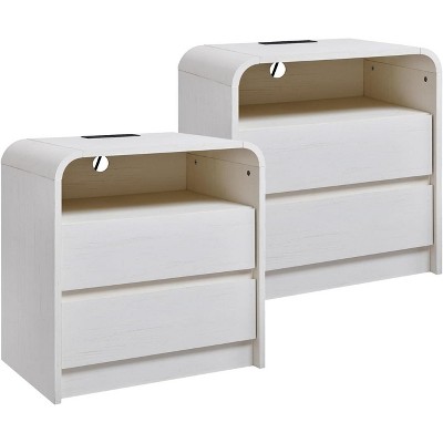 BALHAM TRADE-Nightstand Set of 2 with Charging Station 2 Drawers Storage Side for Bedroom Living White-2 18"D x 18"W x 24"H