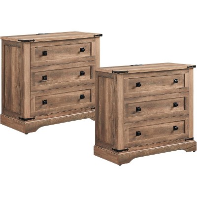BALHAM TRADE-Rattan Decor Drawers Night Stand Set of 2 Bedside Table for Bedroom Living Room Natural-2 15.55"D x 15.75"W x 21.65"H