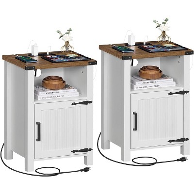 BALHAM TRADE-Rustic Wood Bedside Table Set of 2 with Groove Barn Door End Table with Charging White-2 19.65"D x 17.75"W x 24"H