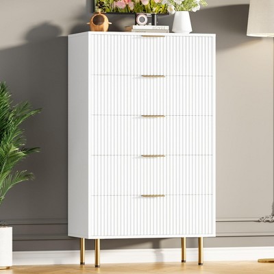 bali & pari Beyla Fluted Wood and Metal 3 Drawer Dresser White/Gold