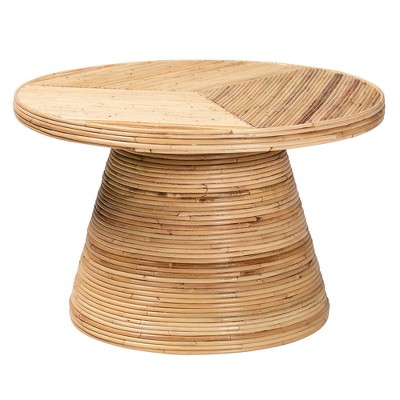 Disclaimer: Rattan is a product of nature and may have variations in areas such as, but not limited to, color, pattern, grain and texture. The hair-like strands of rattan/rattan-fiber are common due to the nature of the material. Overall: 39.40" W x 39.40" D x 15.70" H; Tabletop Thickness: 1.60"; Bottom Open Shelf Space: 39.40" W x 39.40" D x 9.00" H; Clearance: 3.70" H;