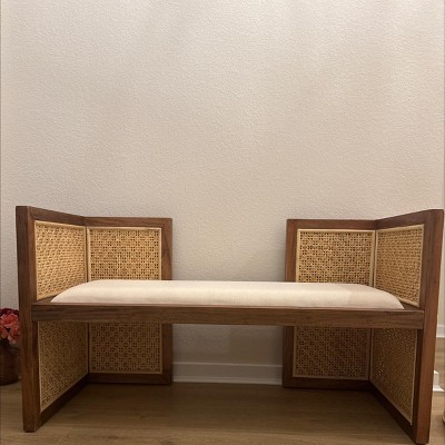 bali & pari Lovina Rattan and Acacia Wood Accent Bench Light Honey/Light Brown