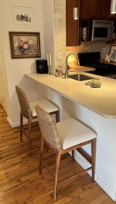 These counter chairs are so cute, even though the back is unusually short/low, which looked a little weird at my kitchen bar. I was trying to talk myself into liking them even though they were a little disproportionate until I sat down. They were wobbly. Too wobbly. Did not seem sturdy at all and very light weight. I returned.