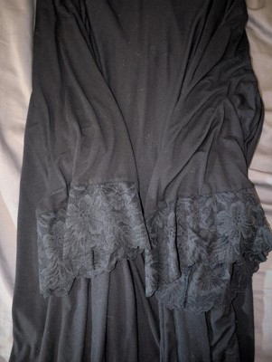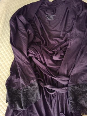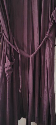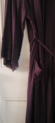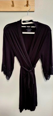 [This review was collected as part of a promotion.] This item was provided without charge in exchange for an honest review. This black robe arrived rather wrinkled, but I think the material is prone to wrinkle. The material is light and soft and is great for warm weather and after shower. The additional inside tie helps keep it secure. The lace on the sleeves adds a feminine touch. I would recommend.