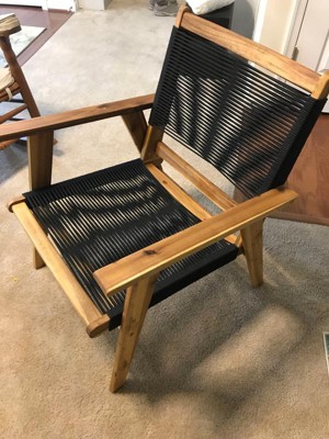 High quality construction of Acacia wood and strong black Cordage. Both very comfortable and easy to get into and up out of chair. Easy assembly. Looks terrific. Totally enjoying it.