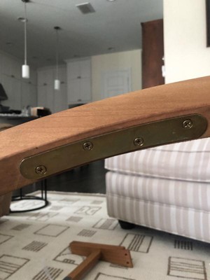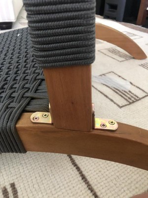 This is a great looking sturdy chair. I weigh over 220+ pounds and this chair seems to easily hold the weight – website says a 330 lb weight limit. It comes unassembled in 3 pieces with only a Phillips #2 screwdriver as the only tool needed besides the allen wrench included. The weave material is of heavy quality and with the eucalyptus wood frame, it really makes a nice piece. The hardware to attach the back pieces will keep the back firmly attached with a long 4+ inch screw and 4 smaller screws with brackets per side. It also has a metal bracket to reinforce the bottom rails. This is by our poolside and it looks great and the water dries quickly on the woven material.
