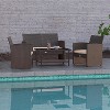 Balkene Home Ashville Conversation Wicker Outdoor Patio Set - Sofa, Table & Two Armchairs Included Khaki Cushions & Tempered Glass Top Easy Assembly
