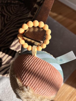 Keep your little one busy in fun play with the Ball Interactive Soft Baby Toy from Cloud Island™. Shaped like a ball, this interactive baby toy features bear-like detailing to add extra cuteness. Made of polyester, this soft toy comes with a ring for easy holding on the finger and a hook-and-loop closure strap for easy attachment to their strollers, cribs, and more.