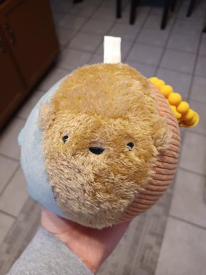 This toy is absolutely adorable. The variety of colors, textures, fabrics, and sounds is so impressive. I love the crinkle tabs that are on the side of it. The bear face is super cute and incredibly soft.