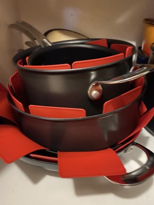(This review was collected as part of a promotion.) I was fortunate to purchase a very high end set of pots and pans. Storage is an issue so I have to stack them. These silicone protectors are perfect! They allow me to stack my pans easily and safely.