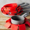 - Set contains five red 15.7-inch pan protectors