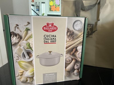 BALLARINI infuses the rich tradition of Italian cuisine into a contemporary line of enameled cast iron cookware, at an attractive price that makes them an ideal option for those just starting out with cast iron. Bellamonte Dutch ovens are also the perfect choice for the practiced home chef looking to expand their cast iron collection. Cook big batches for family and friends, then serve right to the table in these elegant Dutch ovens.The 6-quart Dutch oven is ideal for simmering hearty stews, and frying chicken on the stovetop without messy splatter, or baking bread and roasting veggies to tender perfection in the oven. Featuring a heavy, self-basting lid, food is always moist, tender, and full of flavor. Available in a variety colors inspired by Italian flavors, there’s a style that fits every kitchen aesthetic.Bellamonte enameled cast iron brings authentic Italian heritage to the modern kitchen. The elegant white cream interior possesses exceptional heat-retaining qualities, so the pot heats evenly throughout. The enamel coating is ultra-durable and scratch resistant so you can enjoy your cookware for longer. The exquisite brass-hued lid knob is adorned with the Rivarolo city gate, the iconic emblem of BALLARINI. Serve directly to the table in this stunning Dutch oven that features oversized handles for easy control and maximum maneuverability.