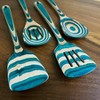 Baltique 4pc Mykonos Utensil Set: Wood Kitchen Tools, Hand Wash, Adult Cooking Utensils, Turquoise Blue
